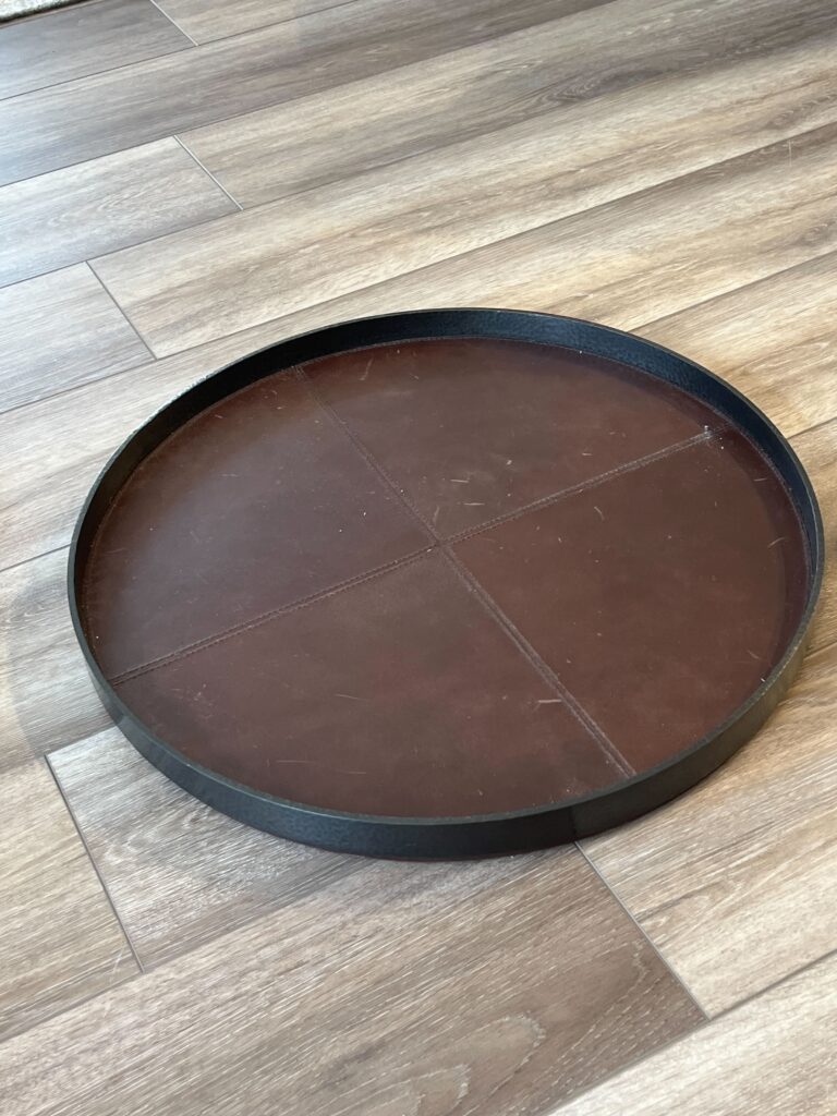 ROUND LEATHER AND METAL HAMMERED TRAY
