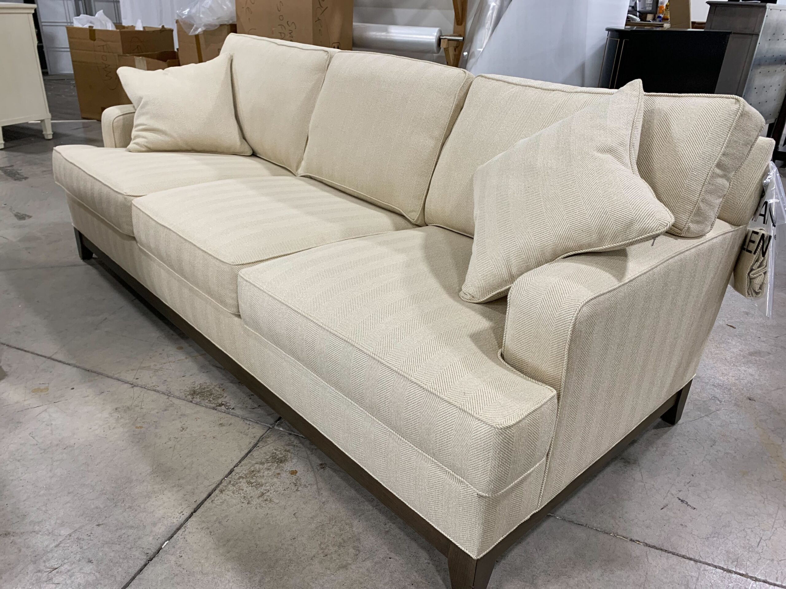 • This sofa features a signature wood base and track arms with loose back and seat cushions that make Arcata suited for both casual and formal spaces