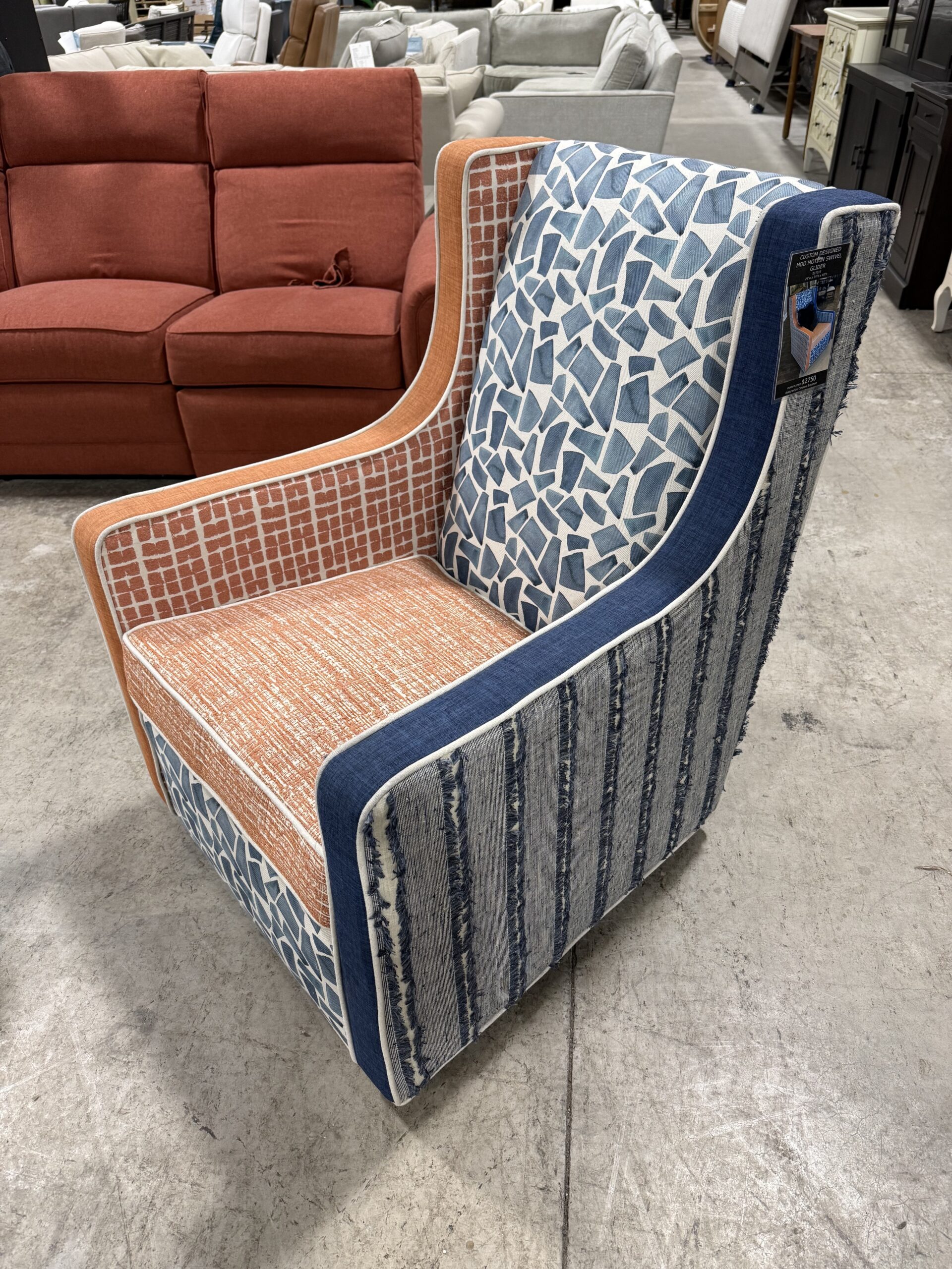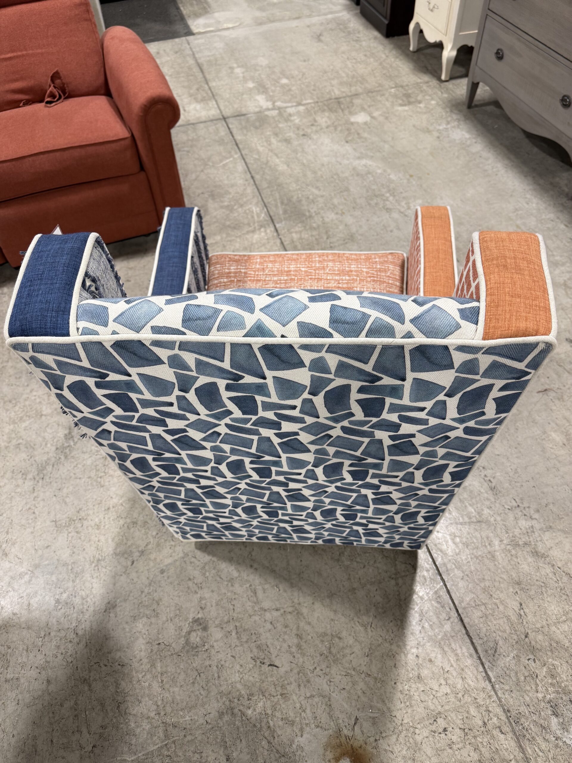 - Custom reupholstered in a variety of blue, orange and white fabrics for our SU fans!